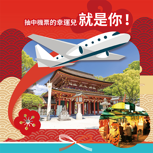 獲得【高雄-福岡 雙人直飛來回機票】共抽出一名。