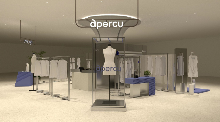 本次以期間限定概念店形式進駐,呈現 apercu-a 聯名系列 — apercu × Yentity、apercu × CHIA、apercu × odyssey,以及品牌自製 apercu-U 系列。透過不同創作視角在同一空間中的並置,將設計靈感轉化為貼近日常的穿搭選擇,展現當代服裝的多元樣貌。"