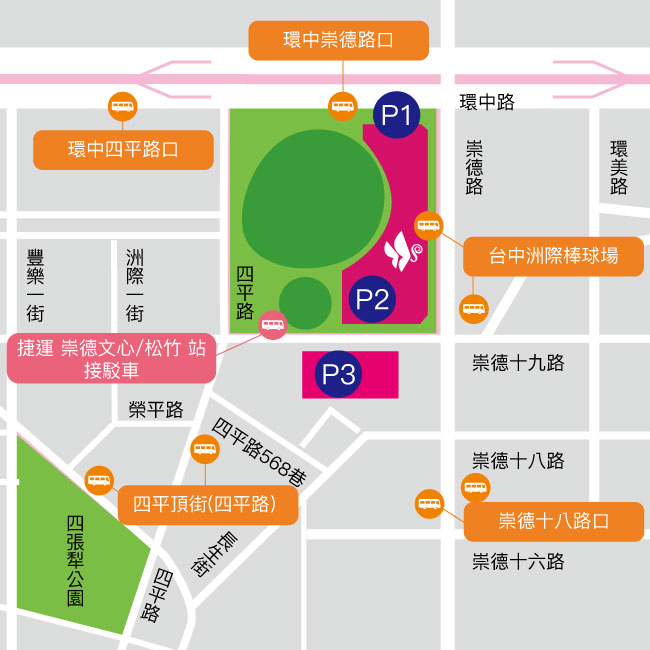 ○西屯區、大雅區、太平區、大里區、豐原區、潭子區→漢神洲際P1停車場入口