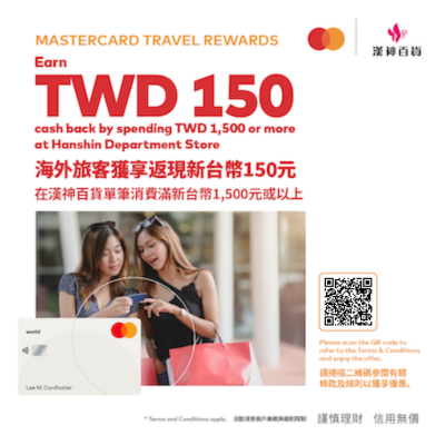漢神百貨 萬事達卡環球賞 消費滿 1,500 賺取 150 現金回饋