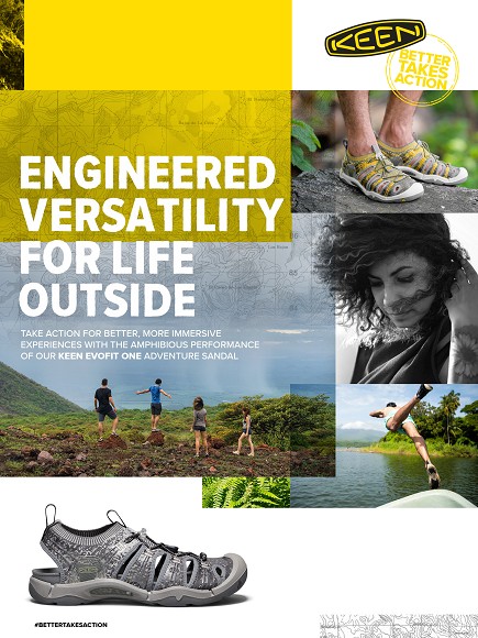 KEEN美國戶外領導品牌:以舒適、機能、社會責任為理念的美國專業戶外鞋領導品牌。系列鞋款包括「涼鞋之王」Newport、「戶外時尚」UNEEK,以及「日本山系風尚」Jasper 等熱銷鞋款。