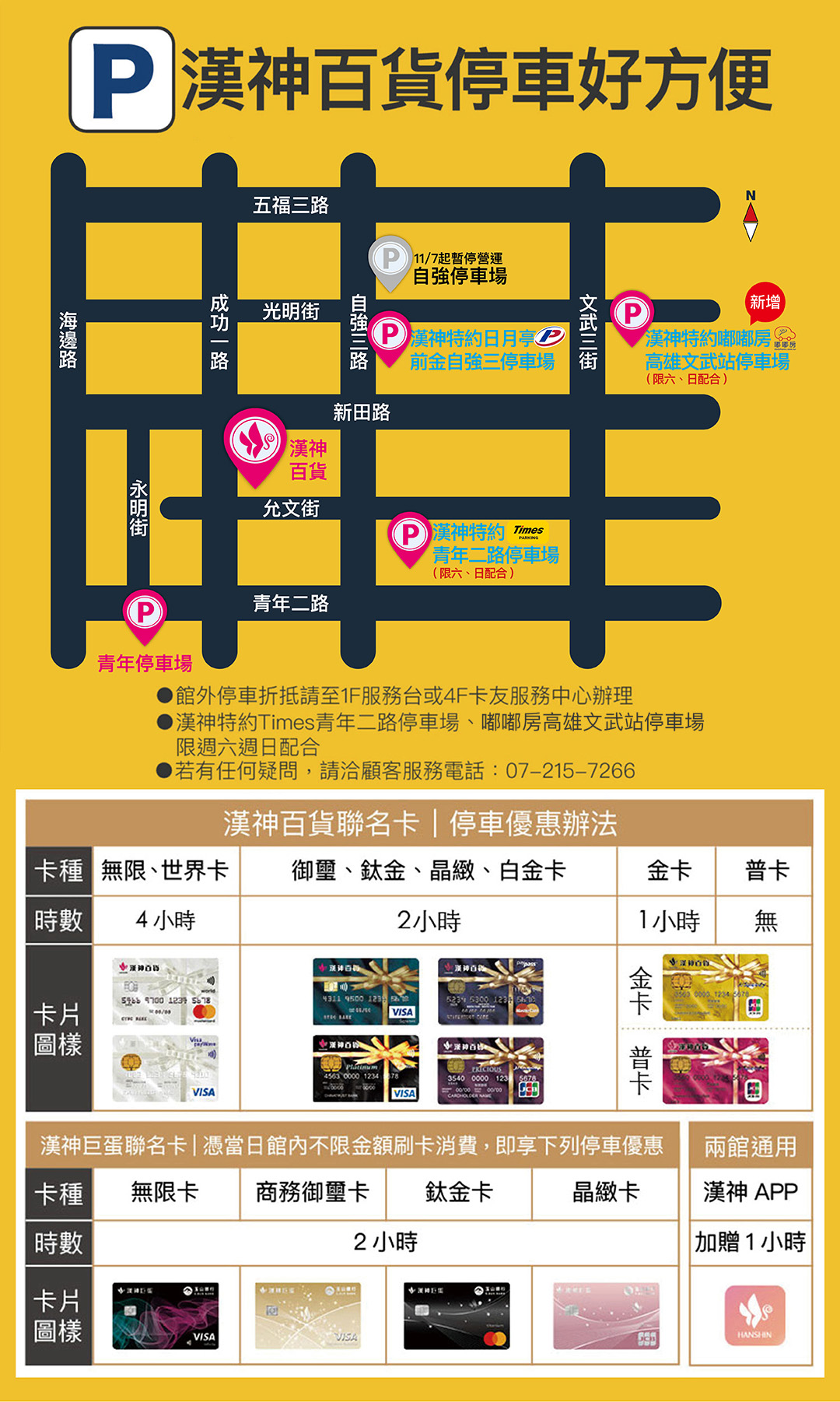 .漢神會員(漢神百貨/漢神巨蛋聯名卡、APP 會員條碼)恕不配合停車優惠。