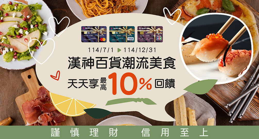 漢神聯名卡|潮流美食天天最高享10%