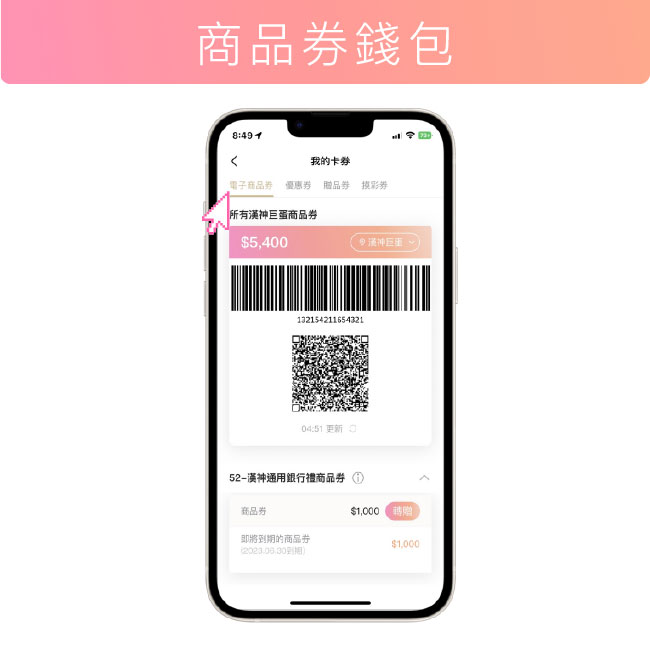 商品券回饋立即歸戶電子錢包,掃碼結帳立即折。
